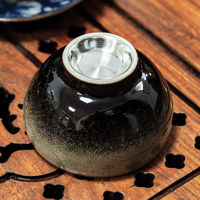 【德化釉瓷】窑变主人杯(纯银990瓷包银内胆)